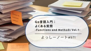 ノウハウ Go言語入門:よくある質問 -Functions and Methods Vol.2- よっしーこんにちは。よっしーです(^^)本日は、Go言語のよくある質問 について解説しています。背景Go言語を学んでいると「なんでこんな仕様になっているんだろう?」「他の言語と違うのはなぜ?」といった疑問が湧いてきませんか。Go言語の公式サ... 2025.10.08 ノウハウ