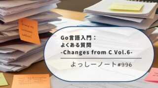 ノウハウ Go言語入門:よくある質問 -Changes from C Vol.6- よっしーこんにちは。よっしーです(^^)本日は、Go言語のよくある質問 について解説しています。背景Go言語を学んでいると「なんでこんな仕様になっているんだろう?」「他の言語と違うのはなぜ?」といった疑問が湧いてきませんか。Go言語の公式サ... 2025.11.01 ノウハウ
